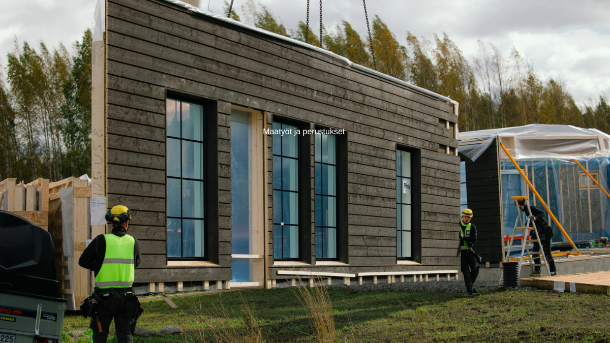 Maatyöt ja perustukset toteutetaan tontin maaperän ja suunnitelmien mukaisesti. Tähän sisältyvät esimerkiksi pohjatyöt, mahdollinen louhinta, salaojitukset sekä perustusten rakentaminen. Huolellisesti tehty perustustyö on koko talon pitkäikäisyyden kannalta kriittinen vaihe, ja se luo pohjan turvalliselle ja kestävälle rakentamiselle.