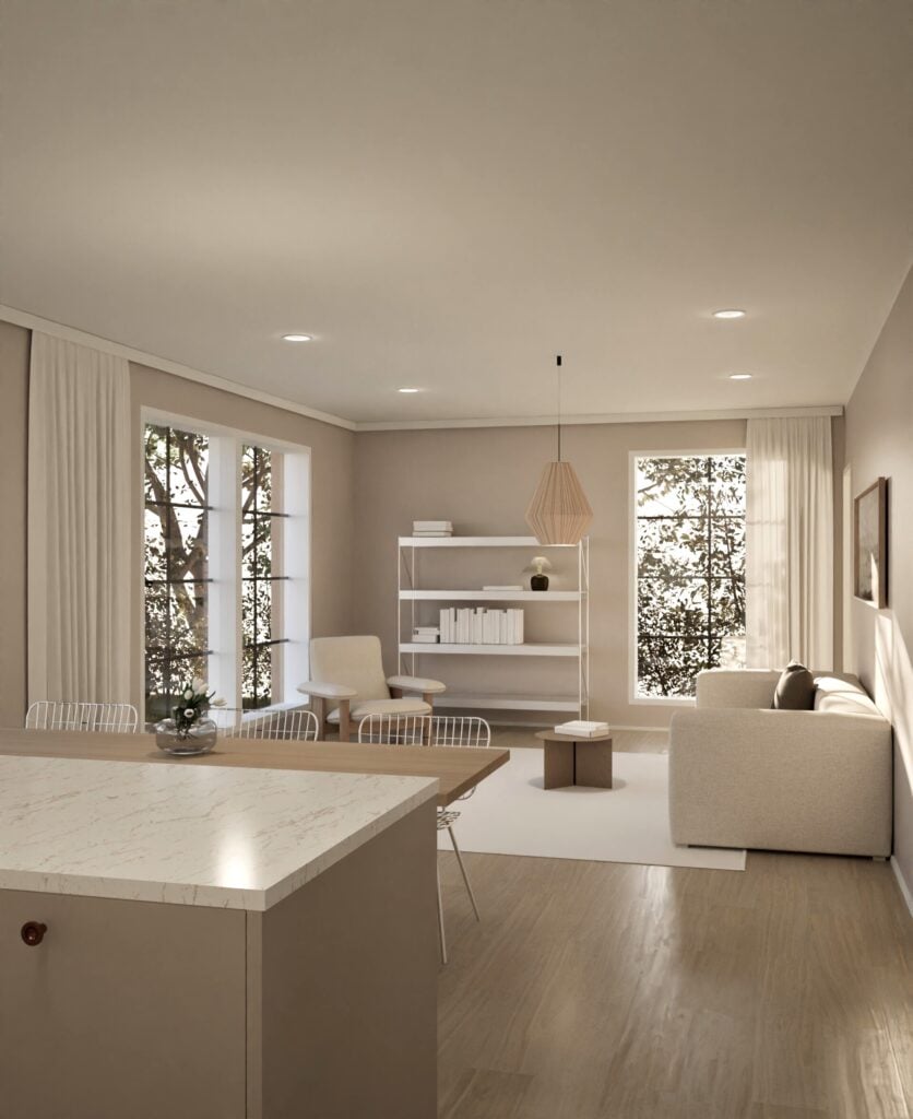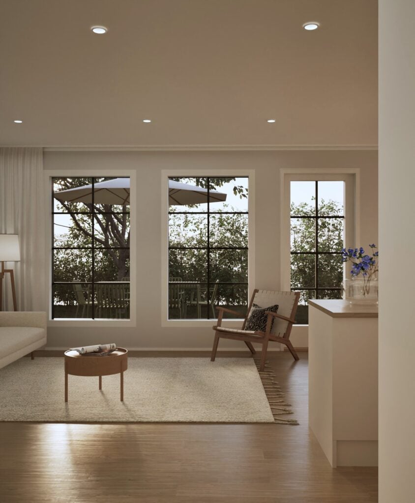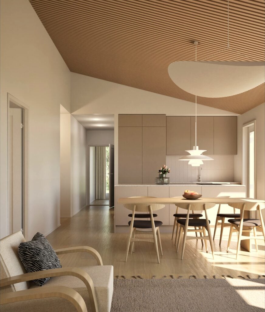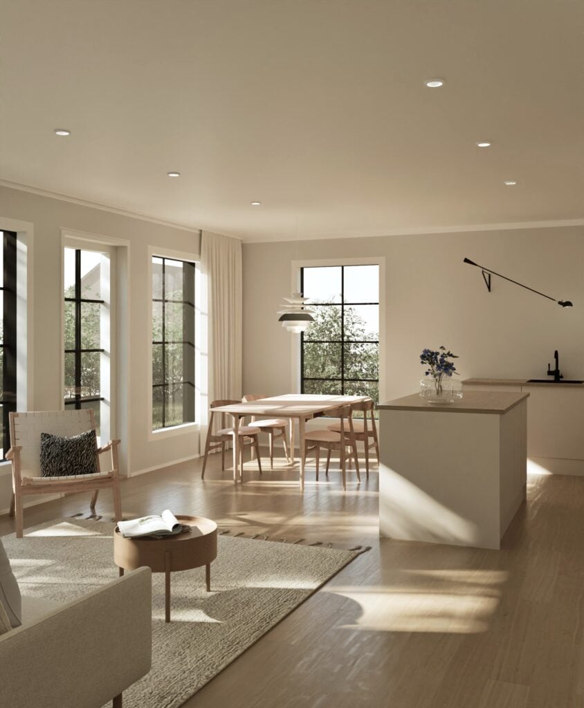 Tässä kodissa vaalitaan tasapainoa ja arjen kauneutta. Sisustuksessa on suosittu luonnonvaloa tulvivaa tilaa, pehmeitä materiaaleja ja puuta. Arjen estetiikka näkyy rauhallisina sävyinä ja viimeistellyssä yksinkertaisuudessa.