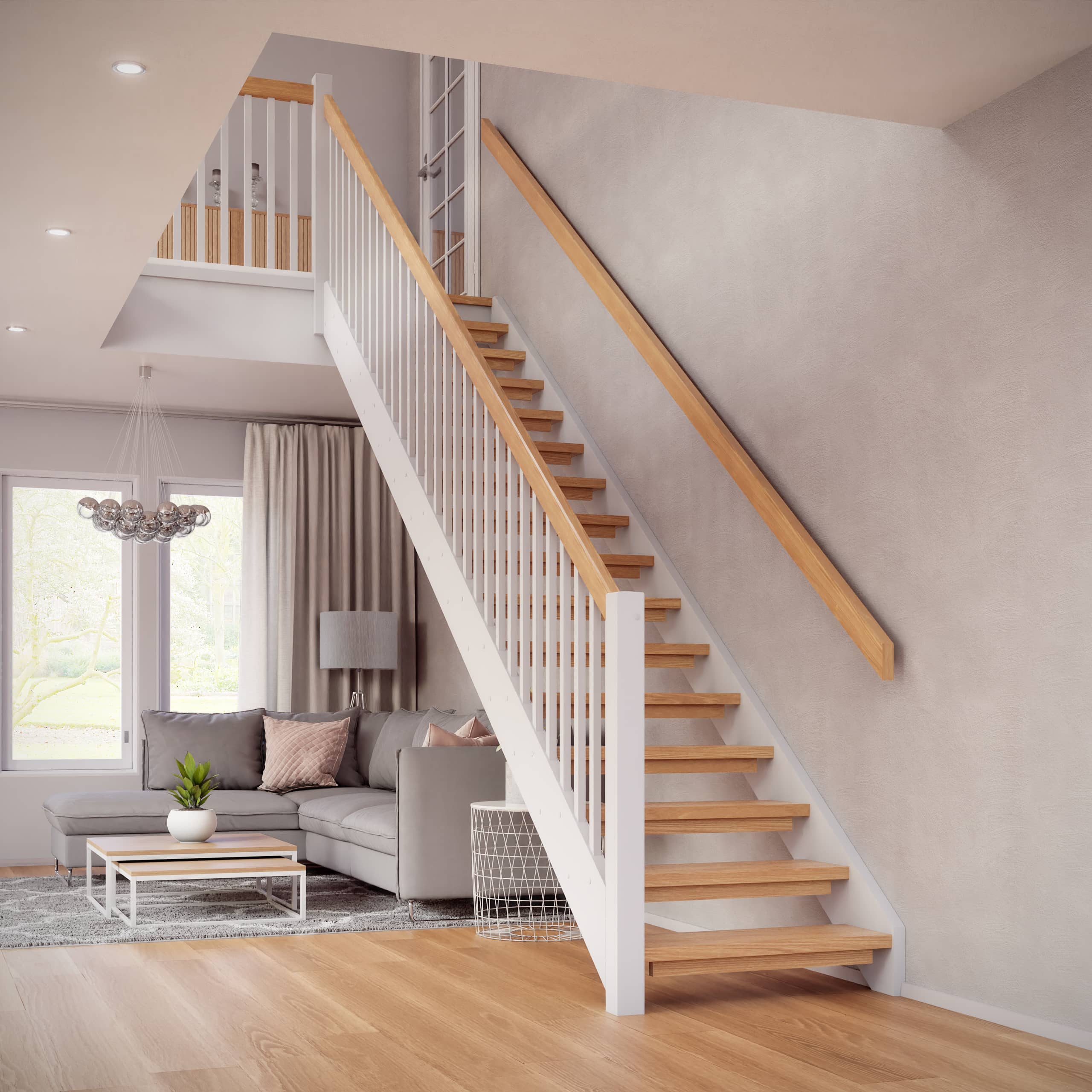 Tähtiporras Vega maalattu valkoinen mänty koivuaskelmilla